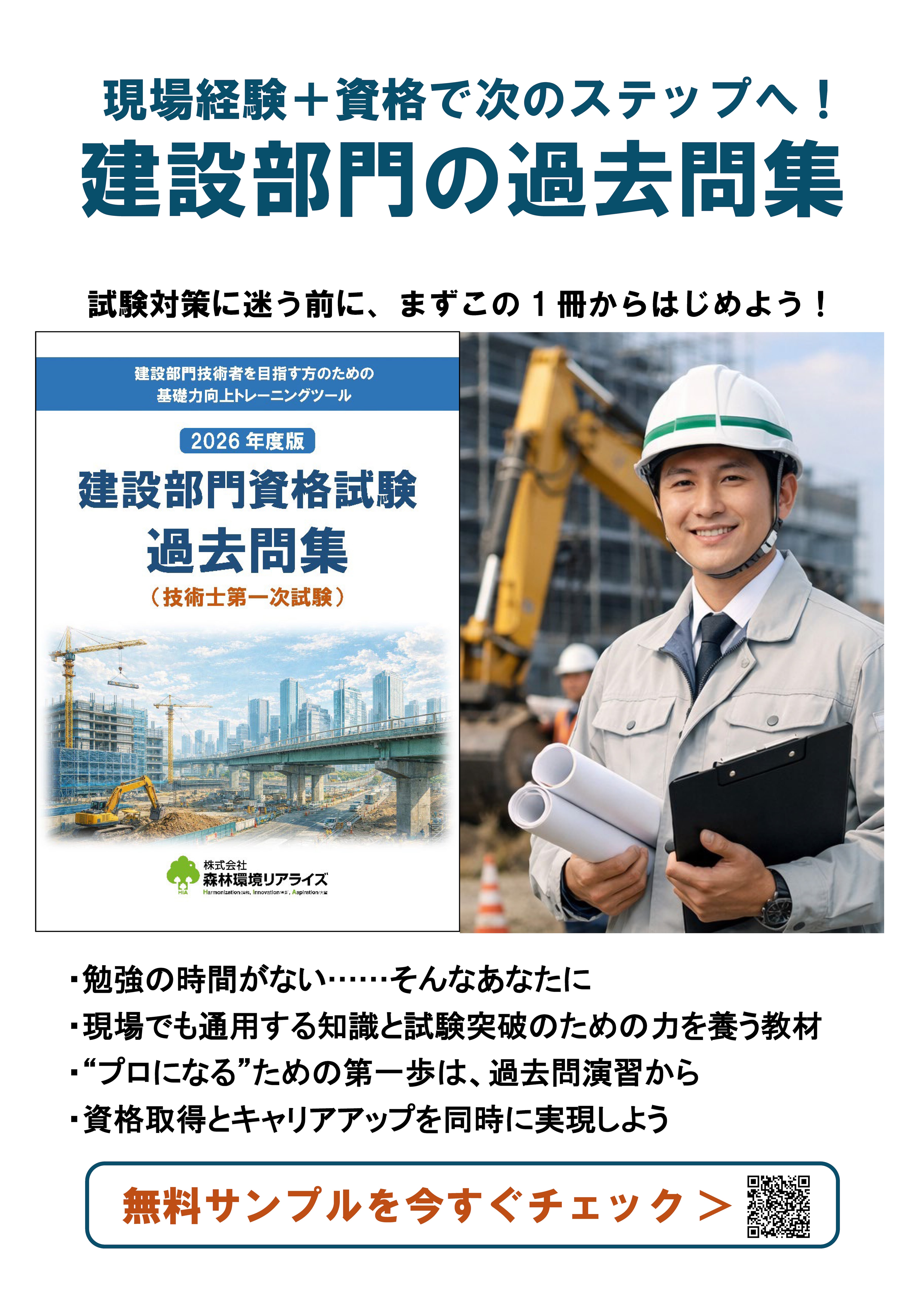 本書(電子書籍PDF)は、「読むだけで合格が近づく」をコンセプトに、過去問の選定・構成・デジタル活用に徹底的にこだわった一冊。建設コンサル・ゼネコン社員、公務員、学生など、幅広い層の学び直し・キャリアアップをサポートします。本書を購入された方には、もれなくスマホ・タブレット・PC で学べる『デジタルドリルアプリ ノウン(一問一答アプリ)』をお付けします!(2026年4月上旬から随時配布)